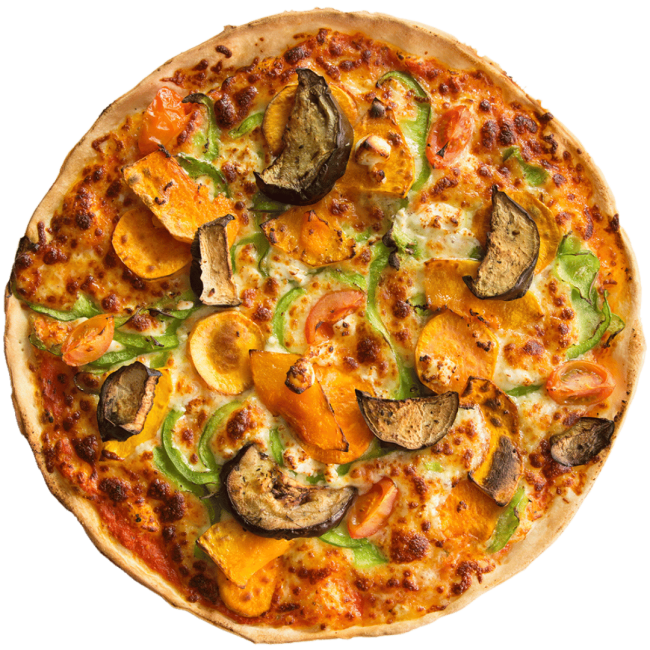 Roasted vegetables and a rich tomato sauce make this pizza a perfect balance of flavours.