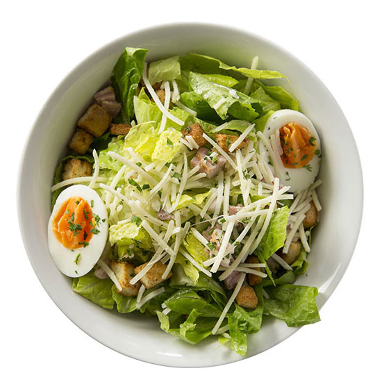 Romaine lettuce, crispy bacon, croutons, and Caesar dressing—simple and satisfying.