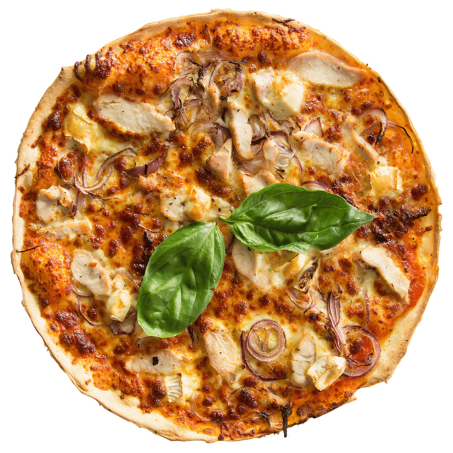 Smoky BBQ sauce topped with juicy chicken, red onions, and mozzarella—full of flavor.