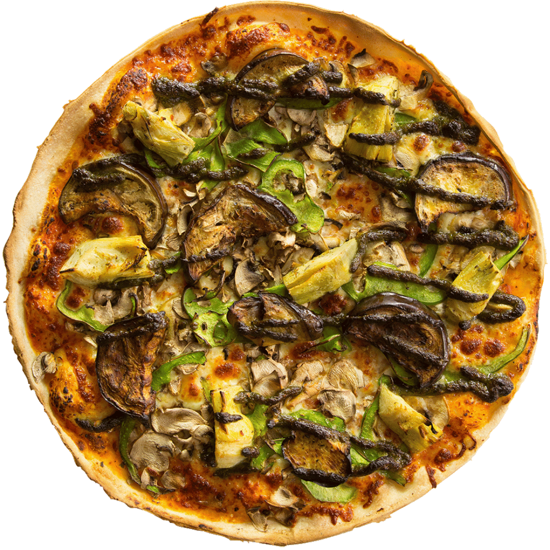 Veggie-packed with capsicum, artichokes, eggplant and mushroom finished with pesto.